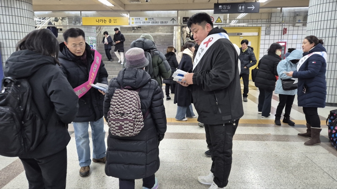 한국에이즈퇴치연맹 서울시지회는 11월 29일 서울 강동구 강동구청역 역사 내에서 시민 대상으로 '2024년 제37회 세계 에이즈의 날 기념 홍보 캠페인' 활동을 전개했다. 이번 캠페인 활동은 강동구보건소와 함께 에이즈 예방 및 인식 개선을 위한 홍보 활동을 실시했다.