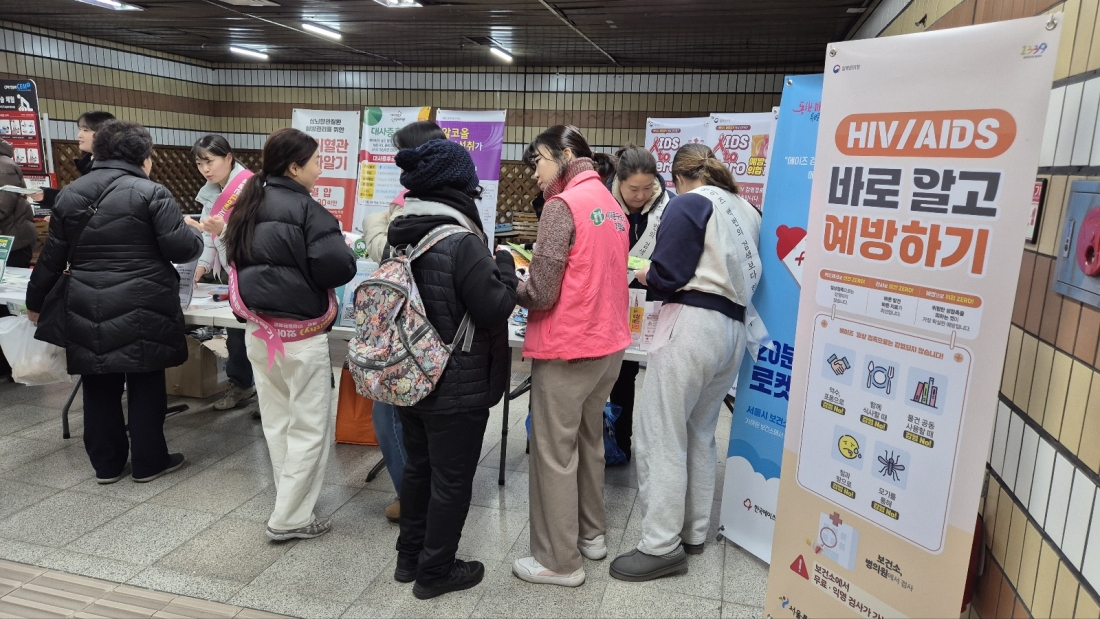 한국에이즈퇴치연맹 서울시지회는 12월 3일 서울 서대문구 홍제역 역사애에서 시민 대상으로 '2024년 제37회 세계 에이즈의 날 기념 홍보 캠페인' 활동을 전개했다. 이번 캠페인 활동은 서대문구보건소와 함께 에이즈 예방 및 인식 개선을 위한 홍보 활동을 실시했다.