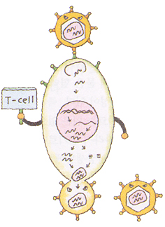 바이러스 복제가 활성화되면 T림프구는 파괴되고, T림프구 밖으로 나온 바이러스는 새로운 T림프구 속으로 침투하는 과정을 반복하게 된다.