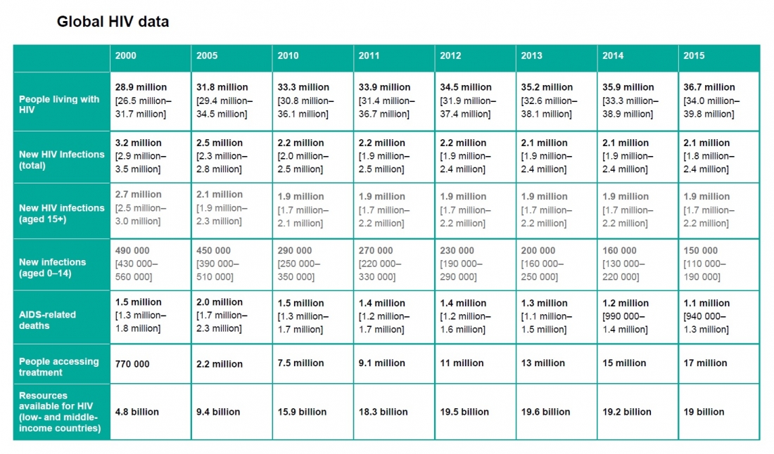 - 세계적으로 210만명이 2015년도에 새로 감염되었음