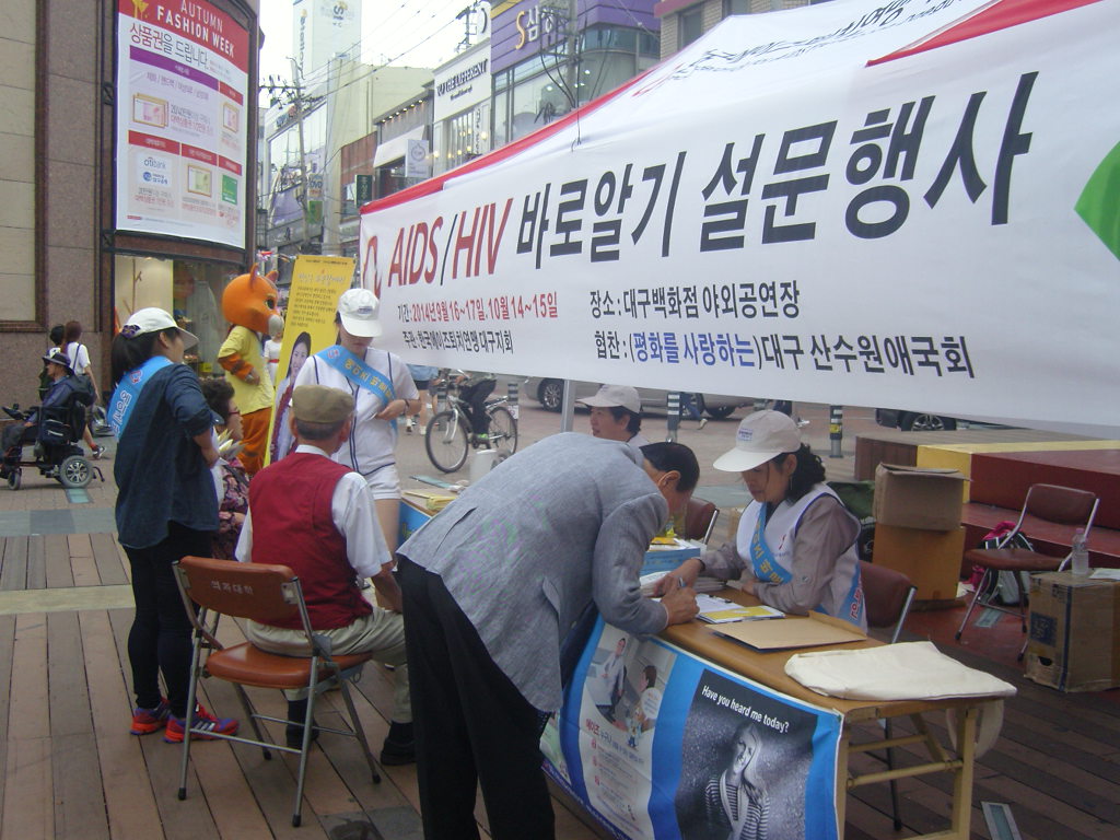 우리 연맹은 2014년 에이즈바로알기 전국순회 캠페인이 지난 2014년 9월 16일~17일 양일간 대구 백화점 앞에서 열렸다.