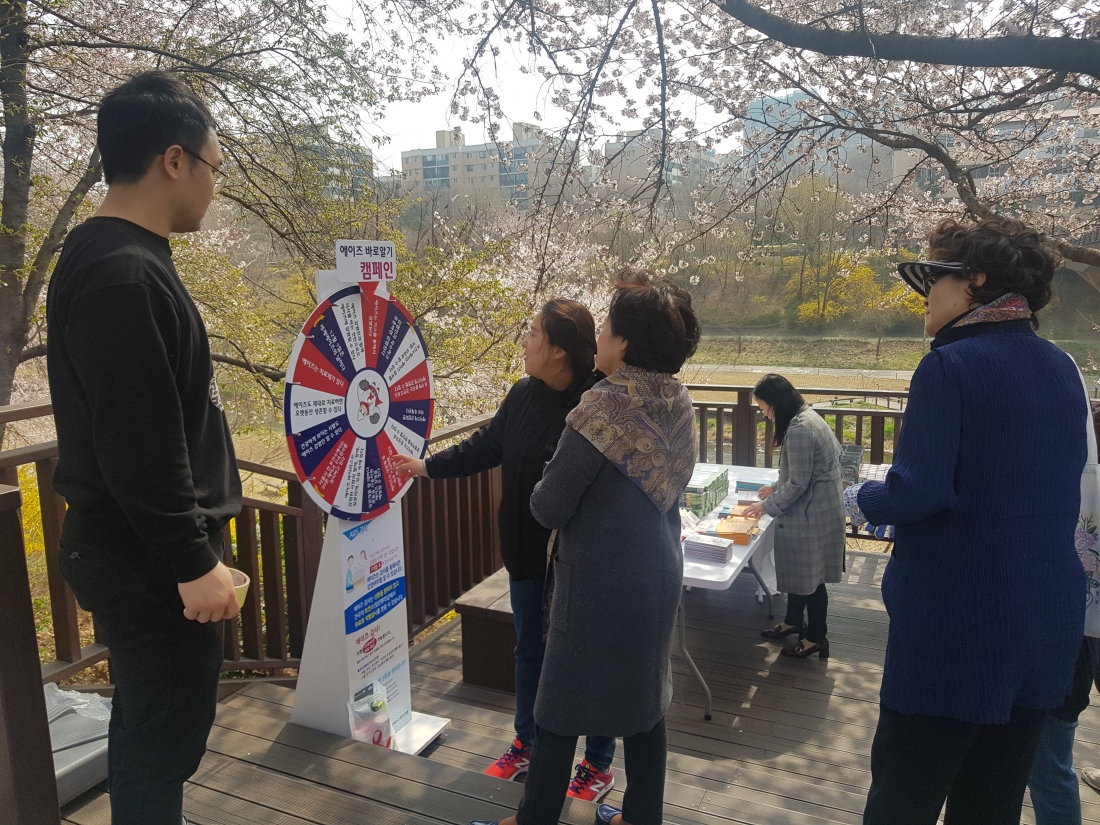 양재천힐링벚꽃축제를 찾은 시민 약 700명을 대상으로 올바른 에이즈 지식정보 전달을 위한 에이즈 바로알기 OX퀴즈 진행과