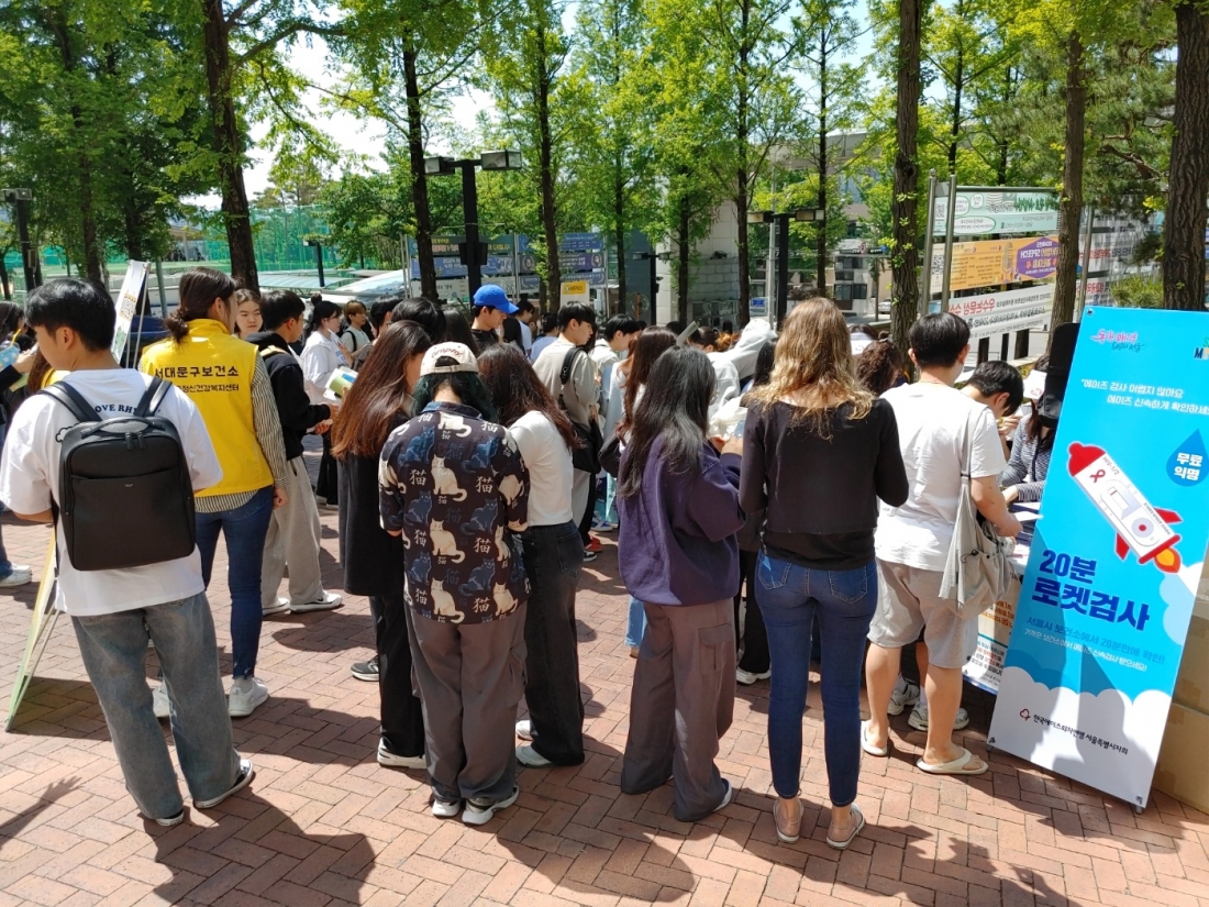 한국에이즈퇴치연맹 서울시지회는 5월 14일 서울 명지전문대학 본관 앞에서 교직원 및 재학생들을 대상으로 에이즈 및 감염병 예방 캠페인 활동을 전개했다. 이번 캠페인 활동은 서대문구보건소와 연계해 '찾아가는 통합건강 홍보관' 부스를 운영해 에이즈 예방 및 인식 개선을 위한 홍보와 결핵 예방 및 감염병 예방 홍보활동도 함께 실시했다.