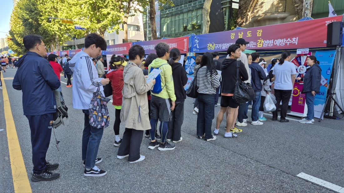 한국에이즈퇴치연맹 서울시지회는 10월 3일 서울 강남구 삼상1동주민센터 앞 봉은사로에서 제21회 국제평화마라톤대회 참가자들(주한 미8군사령부, 외국인, 마라톤 동호회원 및 구민 등 8000여 명)을 대상으로 에이즈 예방 홍보 캠페인 활동을 전개했다. 이번 캠페인 활동은 제21회 국제평화마라톤대회 행사와 연계하여 강남구보건소에서 진행하는 '2024 찾아가는 건강 한마당' 계획에 의거하여 HIV/AIDS 예방 홍보 부스를 운영해 에이즈 예방 및 인식 개선을 위한 홍보 활동을 실시했다.