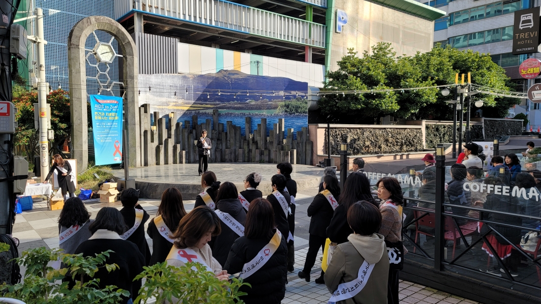 한국에이즈퇴치연맹 제주특별자치도지회는 '제37회 세계 에이즈의 날(12월 1일)'을 맞아 11월 30일 오후 2시부터 제주시 연동 누웨마루 공연장에서 에이즈에 대한 인식개선과 편견 해소를 위한 집중 홍보 캠페인을 진행했다.