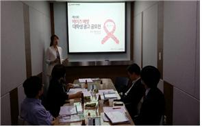 제10회 에이즈예방 대학생 광고공모전 업체선정을 위한 공개 PT가 지난 2014년 5월 9일 용산역 itx 2 회의실에서 열렸다. 광고공모전을 효율적으로 진행하기 위해 공개 경쟁 PT를 통해 업체를 선정하였다. 광고 및 보건학과 관련교수 3분이 심사를 하였다.